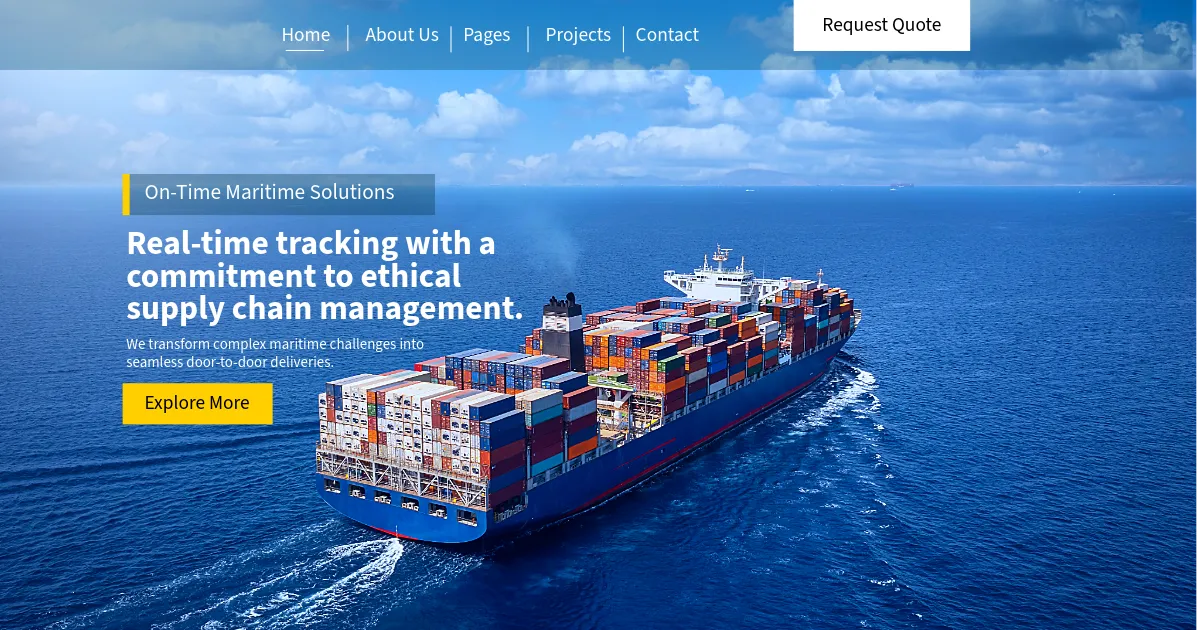Functional Conversion: A white, high-contrast "Request Quote" button in the primary navigation provides a clear, frictionless entry point for new business inquiries.