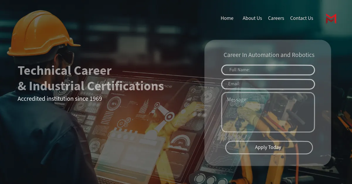 High-Contrast UI: Deep industrial shadows paired with safety orange accents drive the eye directly to the "Apply Today" action.