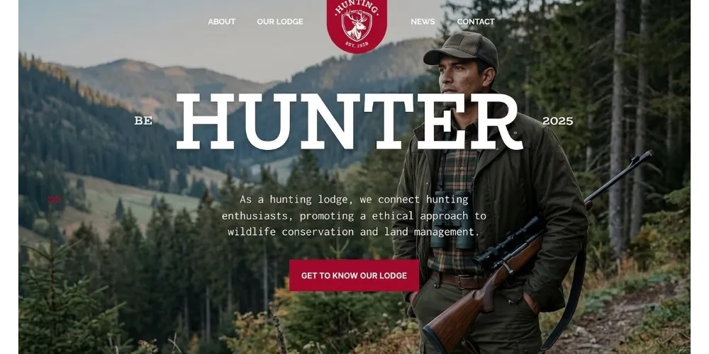 Brand Positioning: The layout elevates the "hunting lodge" concept into an exclusive, ethical destination for land stewardship.